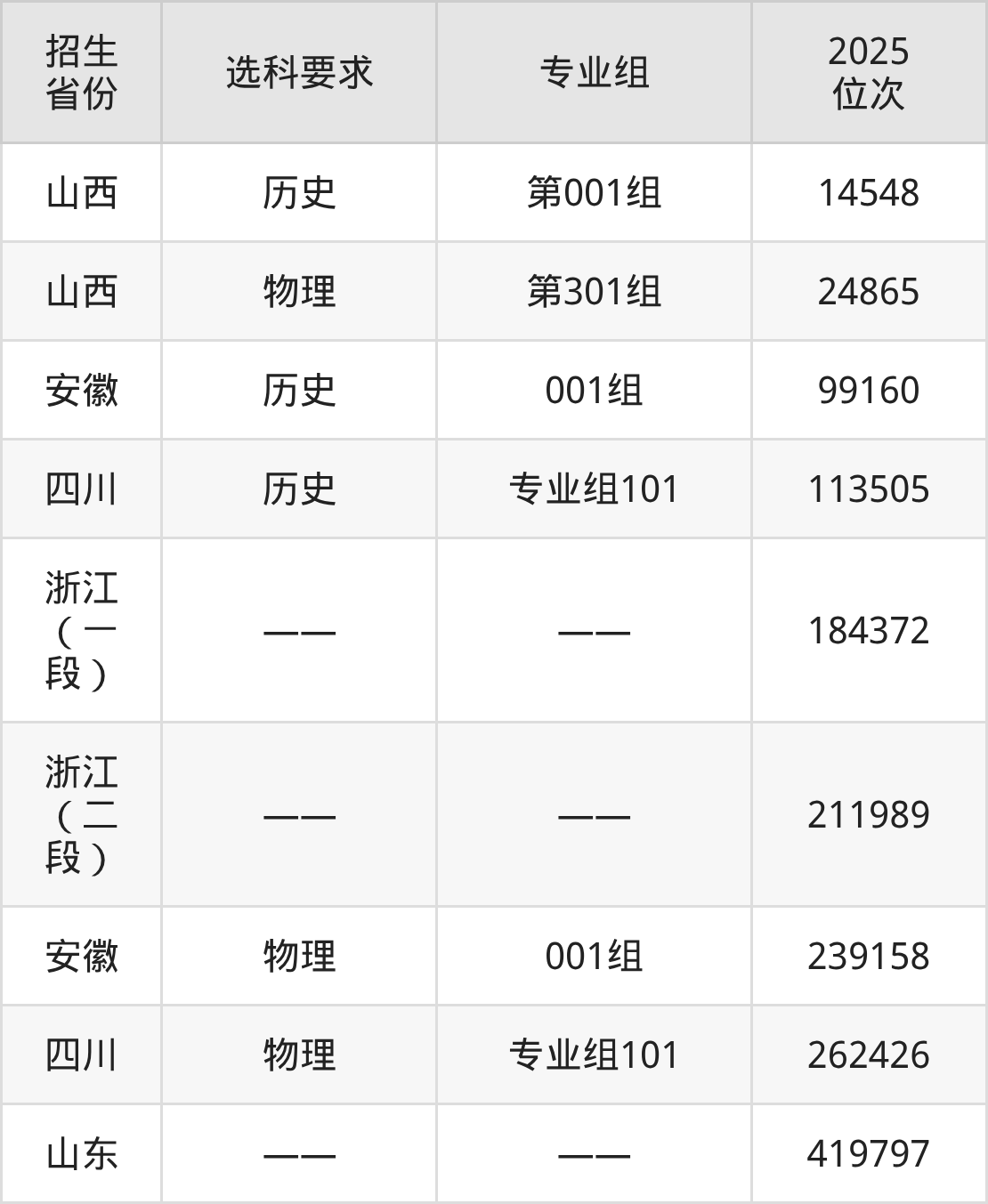 郑州卫生健康职业学院2025年在全国各省的位次差异较大,最高位次是14548位(山西历史类)、最低位次是419797位(山东)。各省具体位次请看下图: