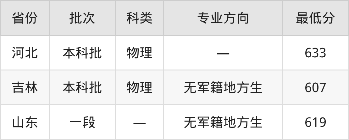 中国人民解放军空军军医大学口腔医学专业在全国各省最低录取分数线为607分(吉林物理类),除此之外,在其余地区的最低分为河北物理类633分、山东619分,以上数据均为2025年数据,供2026年高考生参考。