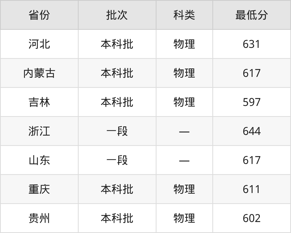 中国传媒大学电子信息工程专业在全国各省最低录取分数线为597分(吉林物理类),除此之外,在其余地区的最低分为内蒙古物理类617分、浙江644分、山东617分、重庆物理类611分等,以上数据均为2025年数据,供2026年高考生参考。