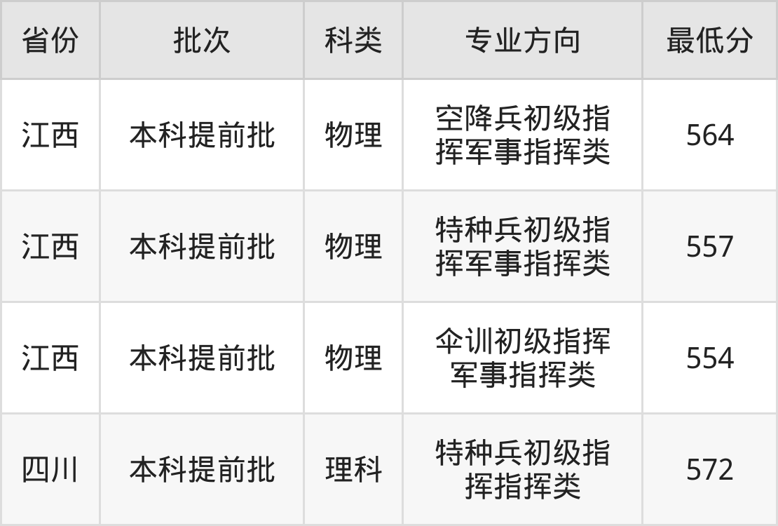 中国人民解放军陆军特种作战学院作战指挥专业在全国各省录取分数线: