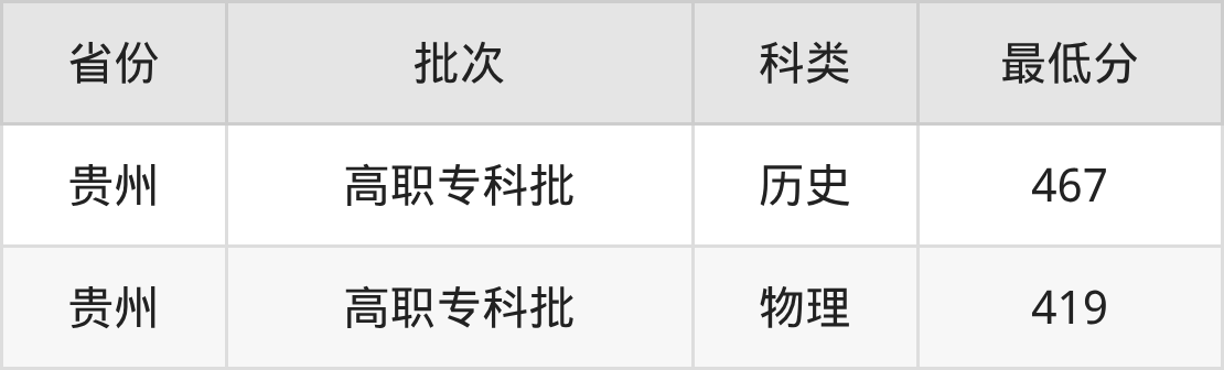 铜仁职业技术大学动物医学专业在全国各省录取分数线: