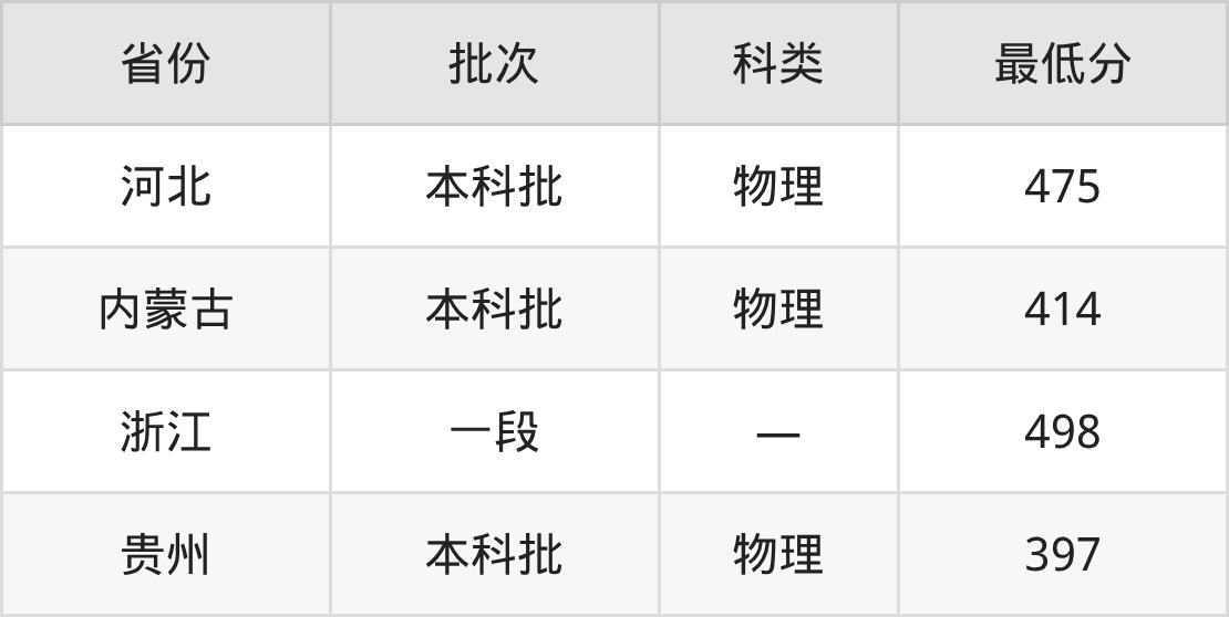 宁波财经学院信息管理与信息系统专业在全国各省最低录取分数线为397分(贵州物理类),除此之外,在其余地区的最低分为河北物理类475分、内蒙古物理类414分、浙江498分,以上数据均为2025年数据,供2026年高考生参考。