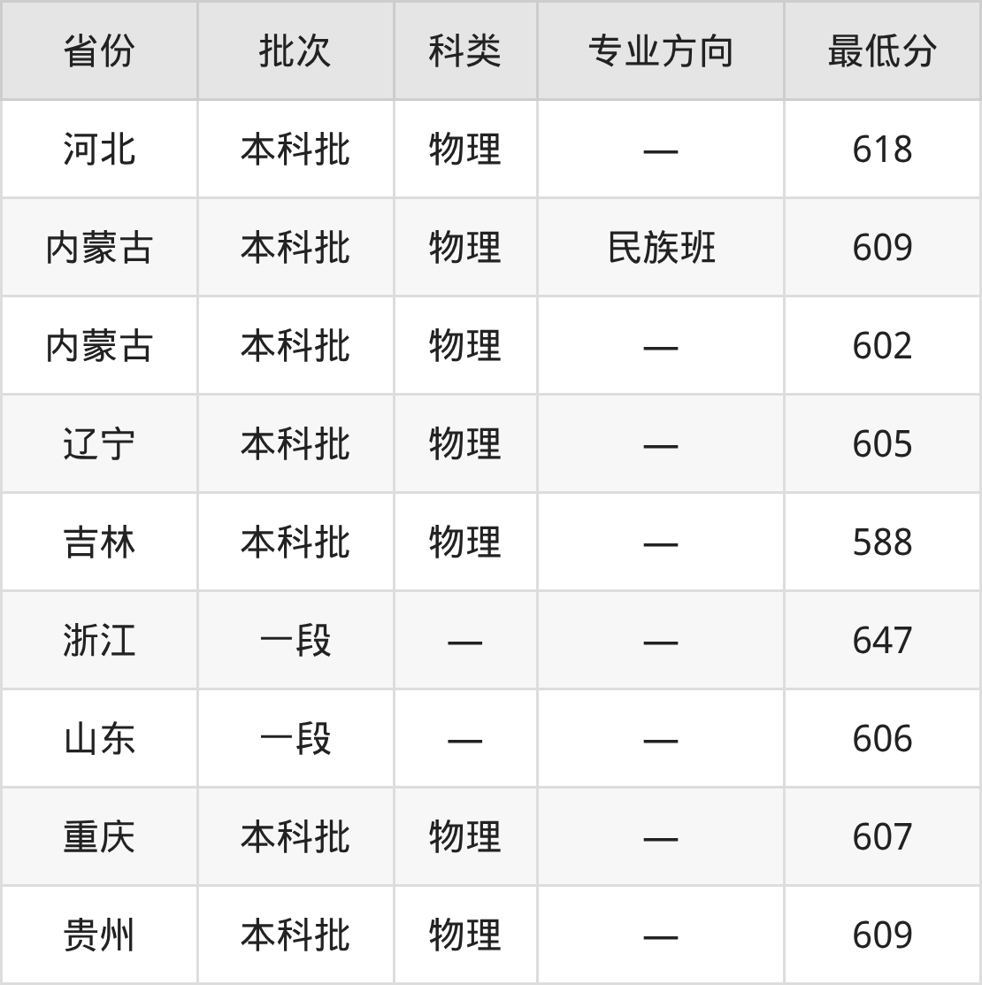 内蒙古:物理组最低602分