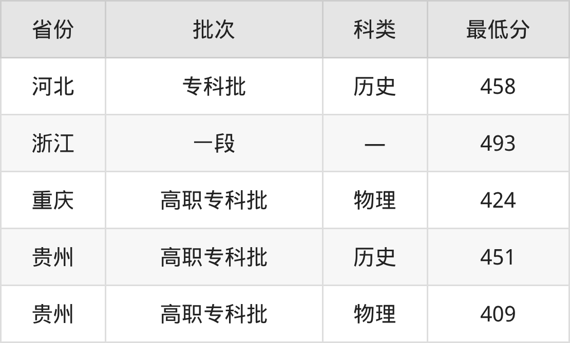 四川工程职业技术大学建筑工程技术专业录取分数线从409分到493分不等,最低分数线如下: