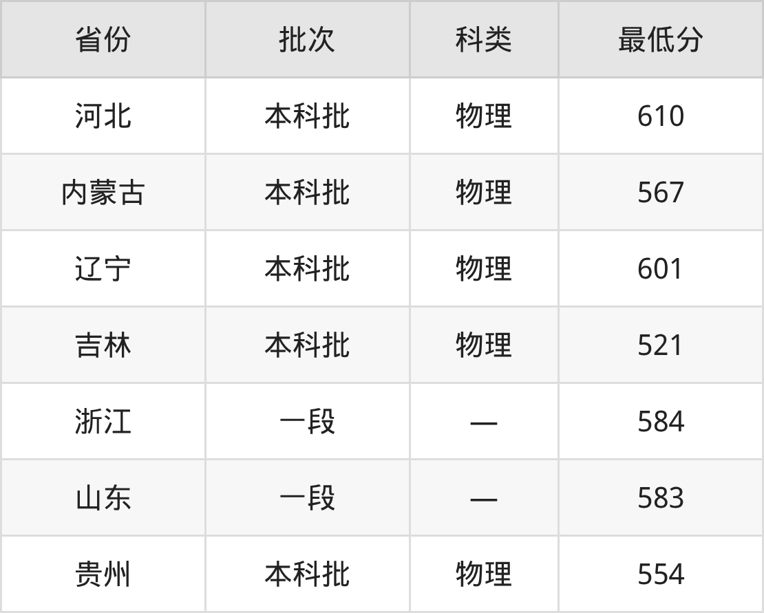 东北电力大学通信工程专业在全国各省最低录取分数线为521分(吉林物理类),除此之外,在其余地区的最低分为河北物理类610分、内蒙古物理类567分、辽宁物理类601分、浙江584分等,以上数据均为2025年数据,供2026年高考生参考。