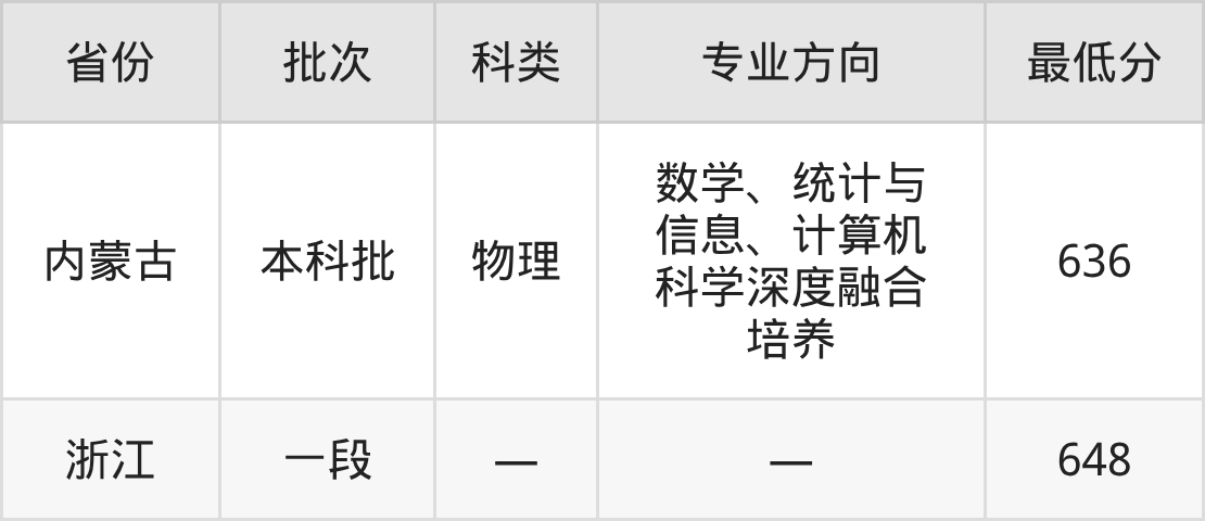 | 物理类 | 201组(国 家专项) | 国家专项数学 、统计与信息 、计算机科学 深度融合培养 | 9 |