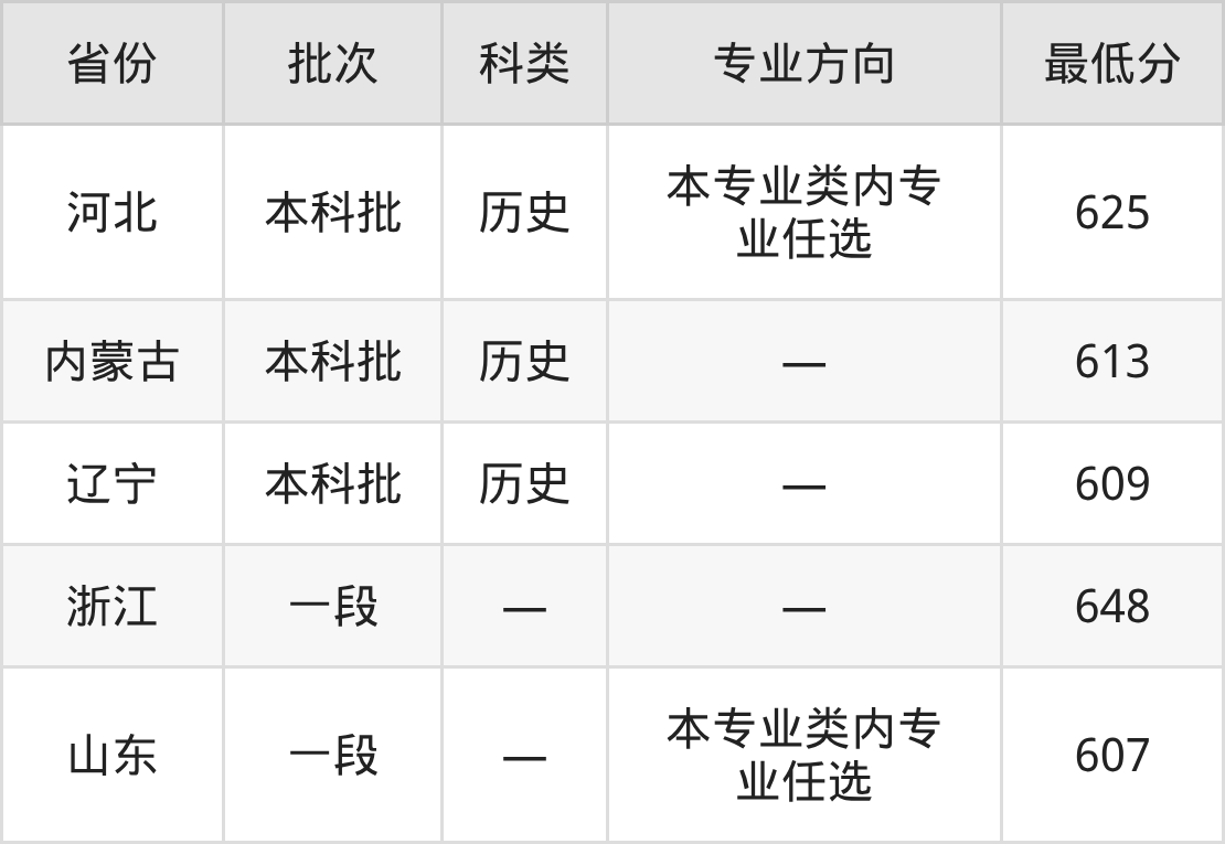 中南财经政法大学新闻传播学类专业在全国各省最低录取分数线为607分(山东),除此之外,在其余地区的最低分为河北历史类625分、内蒙古历史类613分、辽宁历史类609分、浙江648分,以上数据均为2025年数据,供2026年高考生参考。