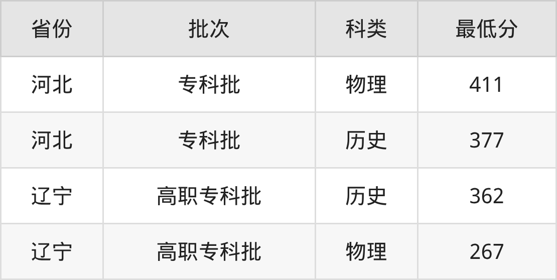 大连装备制造职业技术学院数字媒体技术专业录取分数线从267分到411分不等,最低分数线如下: