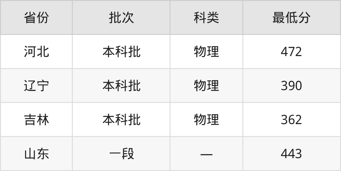 青岛恒星科技学院工程管理专业在全国各省最低录取分数线为362分(吉林物理类),除此之外,在其余地区的最低分为辽宁物理类390分、山东443分、河北物理类472分,以上数据均为2025年数据,供2026年高考生参考。