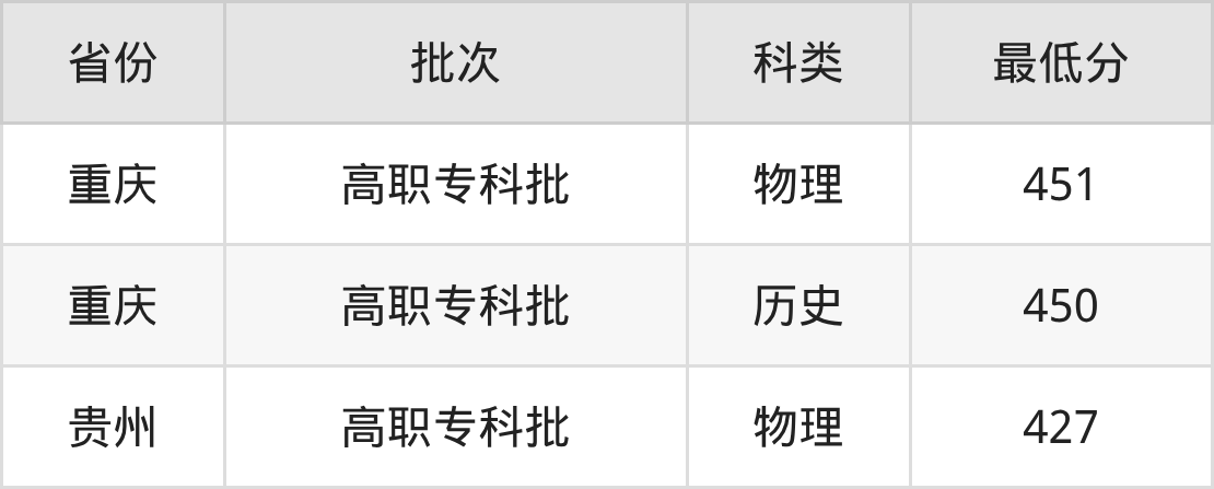 重庆电子科技职业大学智能机器人技术专业在全国各省录取分数线:
