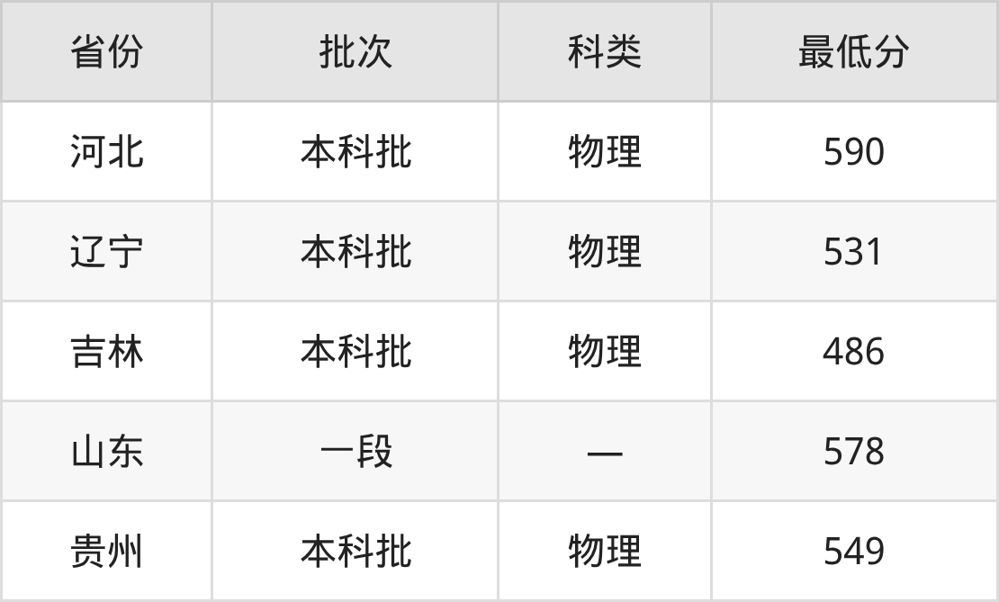 延边大学中医学专业在全国各省最低录取分数线为486分(吉林物理类),除此之外,在其余地区的最低分为河北物理类590分、辽宁物理类531分、山东578分、贵州物理类549分,以上数据均为2025年数据,供2026年高考生参考。