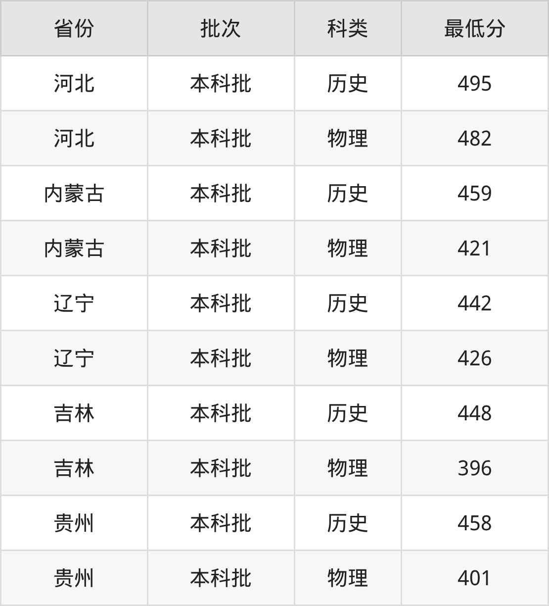 沈阳科技学院会计学专业在全国各省最低录取分数线为396分(吉林物理类),除此之外,在其余地区的最低分为内蒙古物理类421分、辽宁物理类426分、贵州物理类401分、河北物理类482分,以上数据均为2025年数据,供2026年高考生参考。