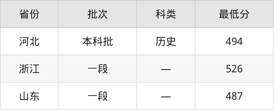 上海中侨职业技术大学汽车服务工程技术专业在全国各省最低录取分数线为487分(山东),除此之外,在其余地区的最低分为河北历史类494分、浙江526分,以上数据均为2025年数据,供2026年高考生参考。