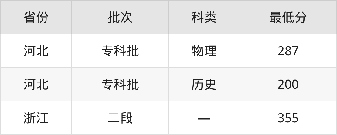 明达职业技术学院市场营销专业在全国各省最低录取分数线为200分(河北历史类),除此之外,在其余地区的最低分为浙江355分,以上数据均为2025年数据,供2026年高考生参考。