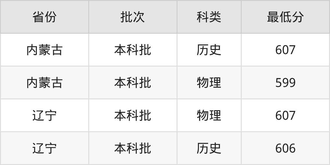 中南财经政法大学预科班专业录取分数线从599分到607分不等,最低分数线如下: