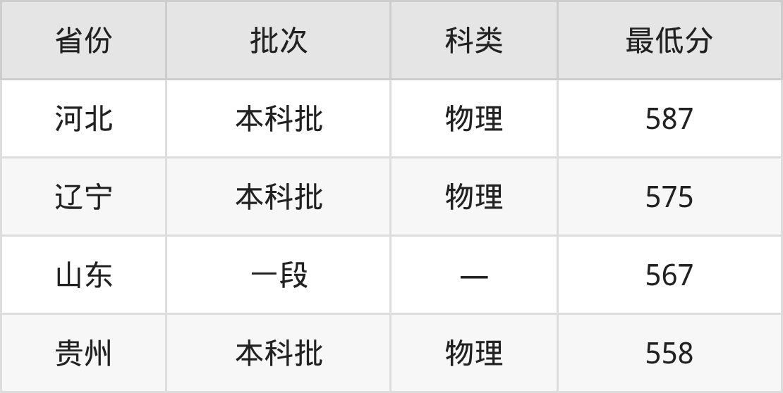 天津理工大学制药工程专业在全国各省最低录取分数线为558分(贵州物理类),除此之外,在其余地区的最低分为河北物理类587分、辽宁物理类575分、山东567分,以上数据均为2025年数据,供2026年高考生参考。