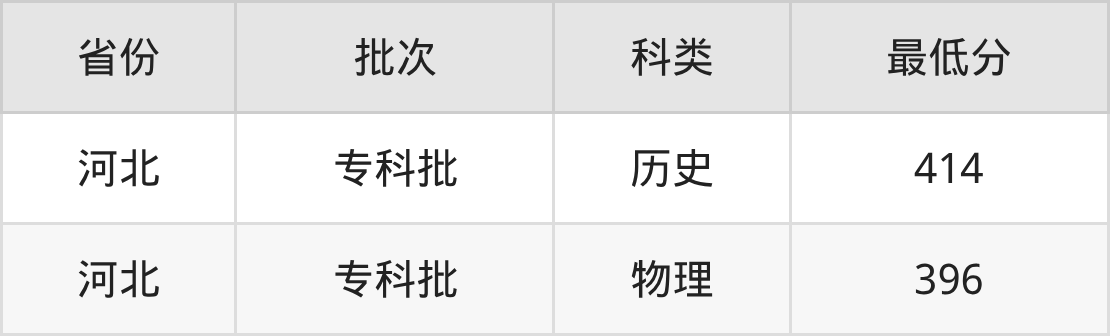 河北资源环境职业技术学院宝玉石鉴定与加工专业录取分数线从396分到414分不等,最低分数线如下: