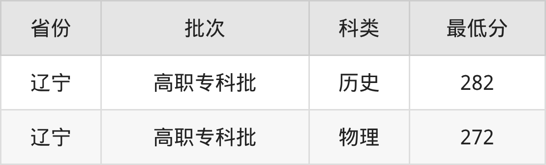 大连装备制造职业技术学院旅游管理专业录取分数线从272分到282分不等,最低分数线如下: