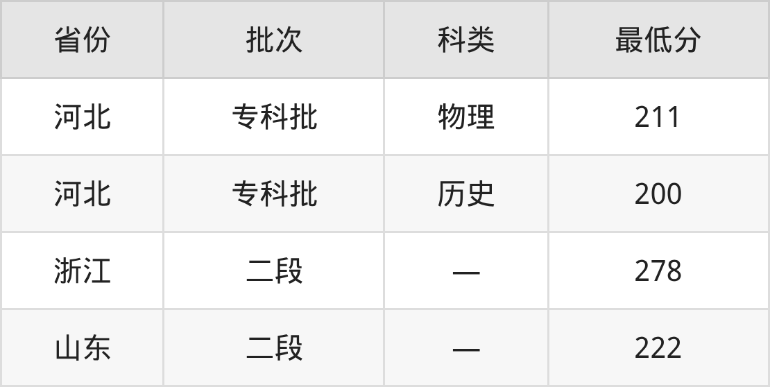 衡阳理工职业学院口腔医学技术专业在全国各省最低录取分数线为200分(河北历史类),除此之外,在其余地区的最低分为浙江278分、山东222分,以上数据均为2025年数据,供2026年高考生参考。