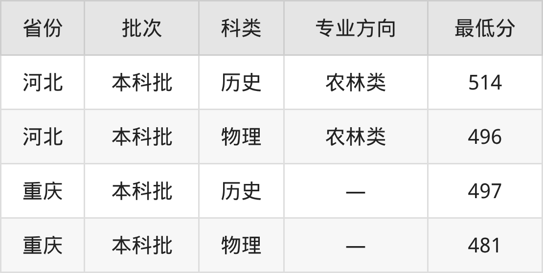 新疆农业职业技术大学现代种业技术专业录取分数线从481分到514分不等,最低分数线如下: