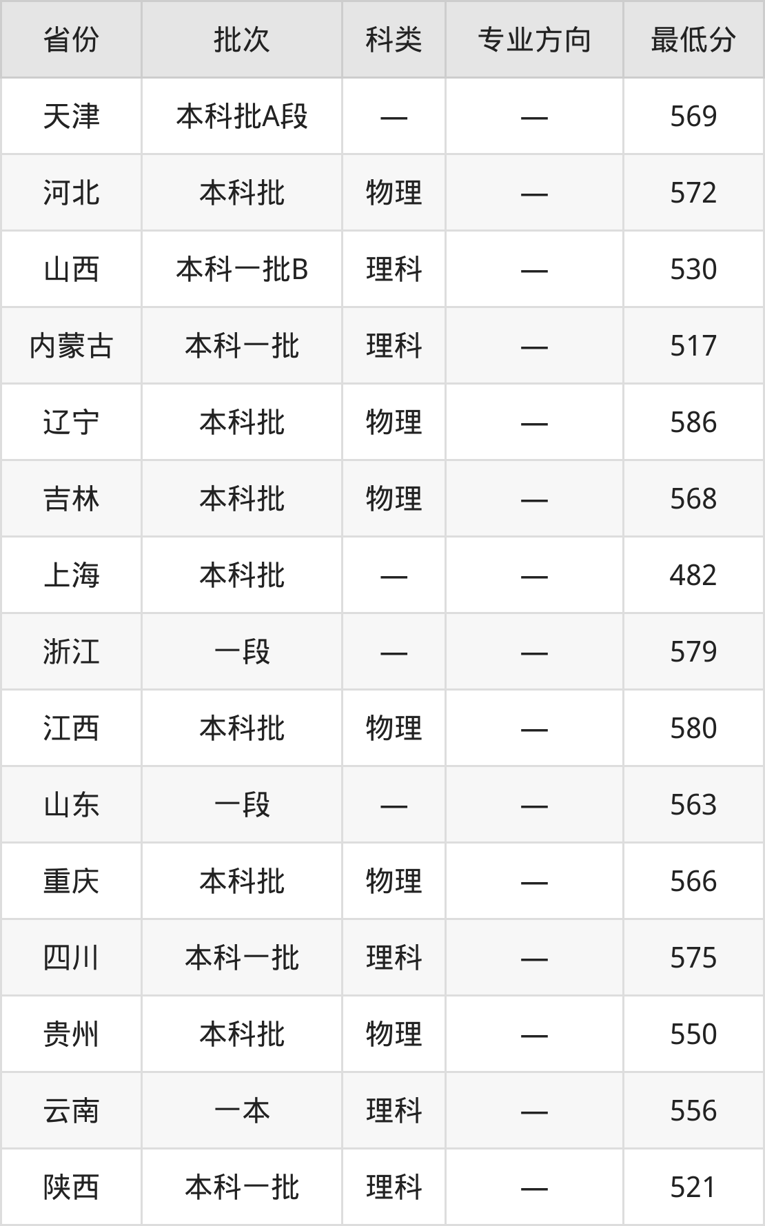 江苏科技大学海洋工程类专业录取分数线从482分到586分不等,在部分地区的最低分数线如下: