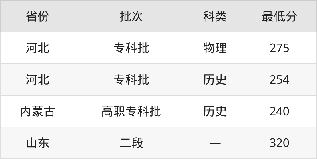 宿迁职业技术学院虚拟现实技术应用专业在全国各省最低录取分数线为240分(内蒙古历史类),除此之外,在其余地区的最低分为河北历史类254分、山东320分,以上数据均为2025年数据,供2026年高考生参考。