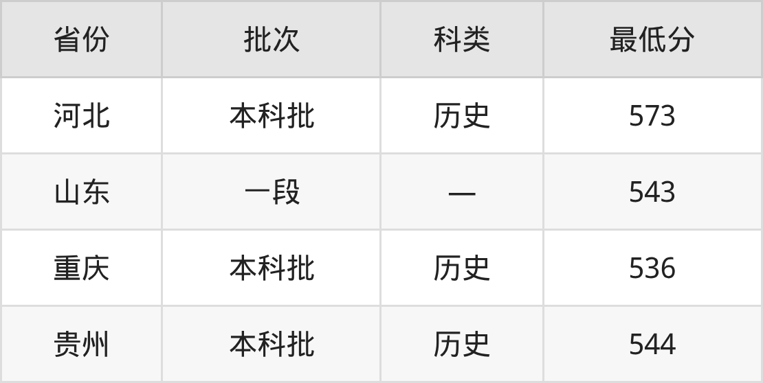 景德镇陶瓷大学财务管理专业在全国各省最低录取分数线为536分(重庆历史类),除此之外,在其余地区的最低分为河北历史类573分、山东543分、贵州历史类544分,以上数据均为2025年数据,供2026年高考生参考。