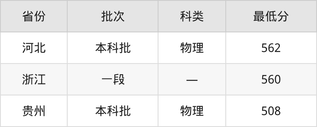 浙江水利水电学院水利水电工程专业在全国各省最低录取分数线为508分(贵州物理类),除此之外,在其余地区的最低分为河北物理类562分、浙江560分,以上数据均为2025年数据,供2026年高考生参考。