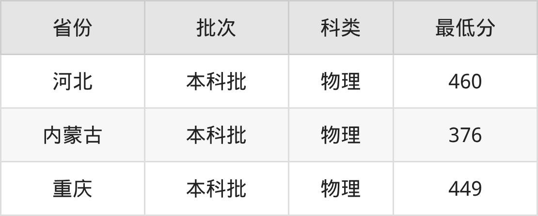南宁理工学院数据科学与大数据技术专业在全国各省最低录取分数线为376分(内蒙古物理类),除此之外,在其余地区的最低分为河北物理类460分、重庆物理类449分,以上数据均为2025年数据,供2026年高考生参考。
