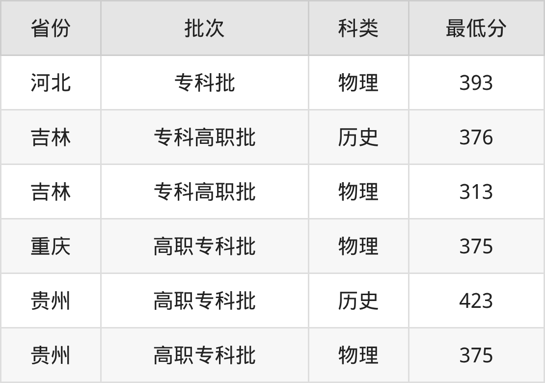 黑龙江司法警官职业学院法律文秘专业在全国各省最低录取分数线为313分(吉林物理类),除此之外,在其余地区的最低分为河北物理类393分、重庆物理类375分、贵州物理类375分,以上数据均为2025年数据,供2026年高考生参考。