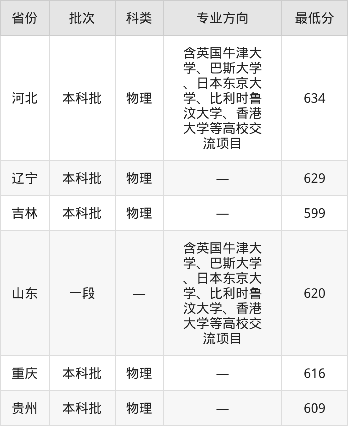 | 含英国牛津大 学、巴斯大学 、日本东京大 学、比利时鲁 汶大学、香港 大学等高校交 流项目 | 15 |