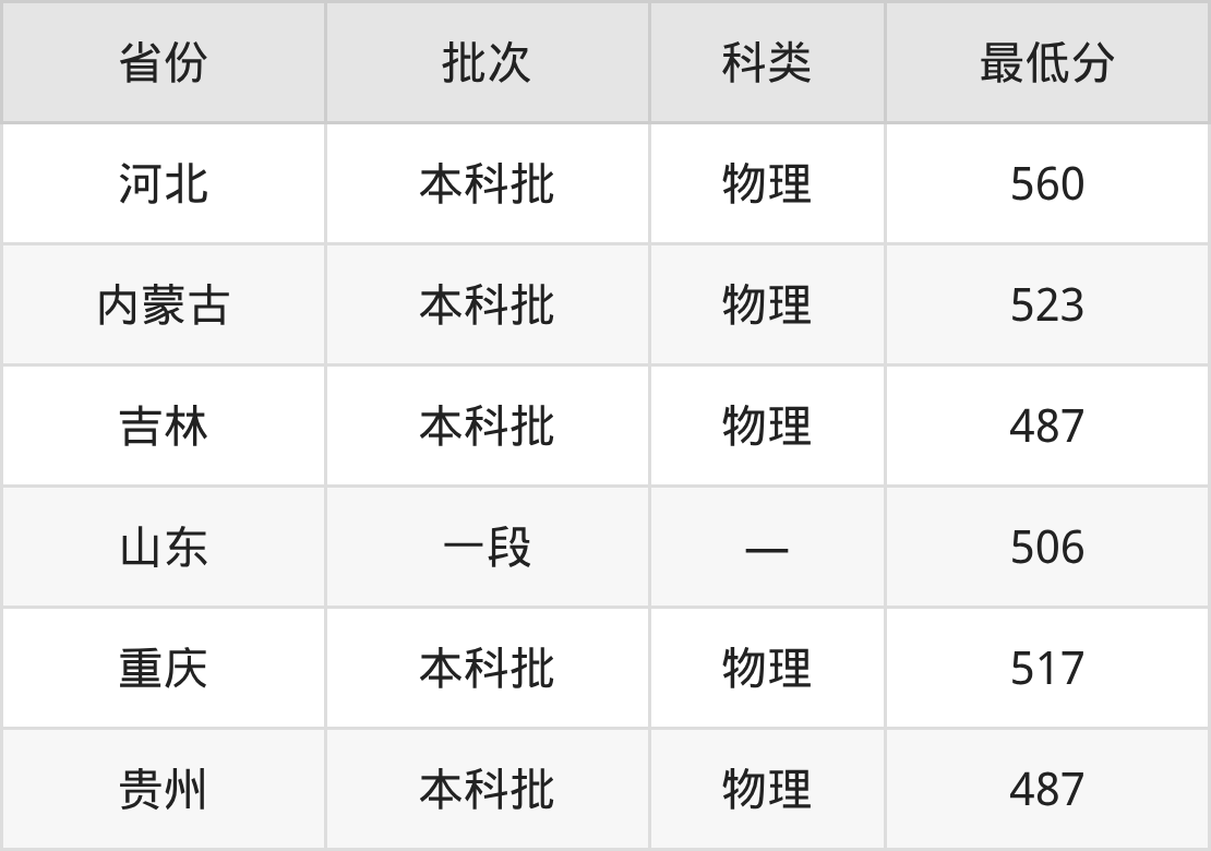 河南财政金融学院计算机科学与技术专业在全国各省最低录取分数线为487分(吉林物理类),除此之外,在其余地区的最低分为重庆物理类517分、贵州物理类487分、河北物理类560分、内蒙古物理类523分等,以上数据均为2025年数据,供2026年高考生参考。