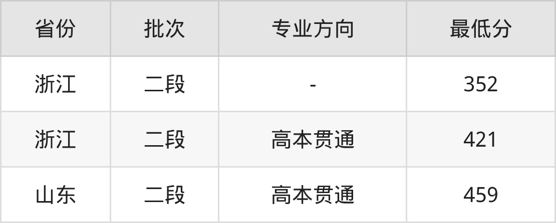 352分(位次273710名),421分(高本贯通、位次242481名);
