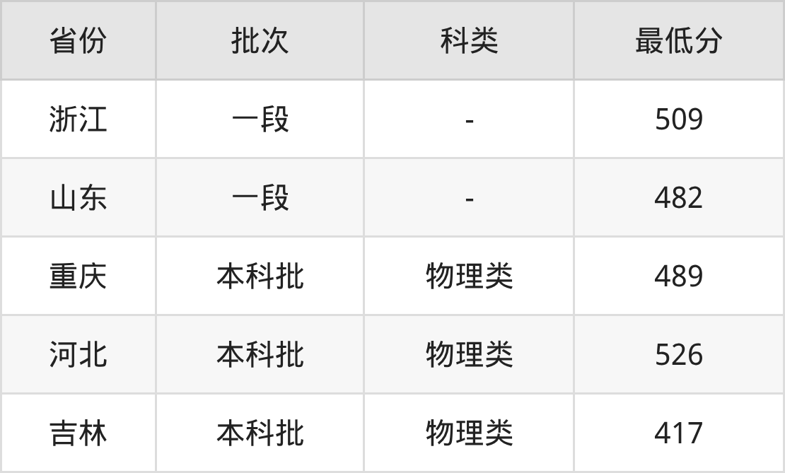 | 批次 | 科类 | 最低分 | 位次 |