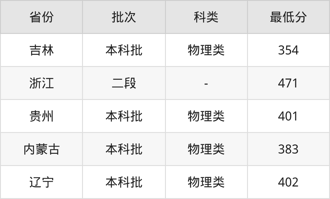 | 批次 | 科类 | 最低分 | 位次 |