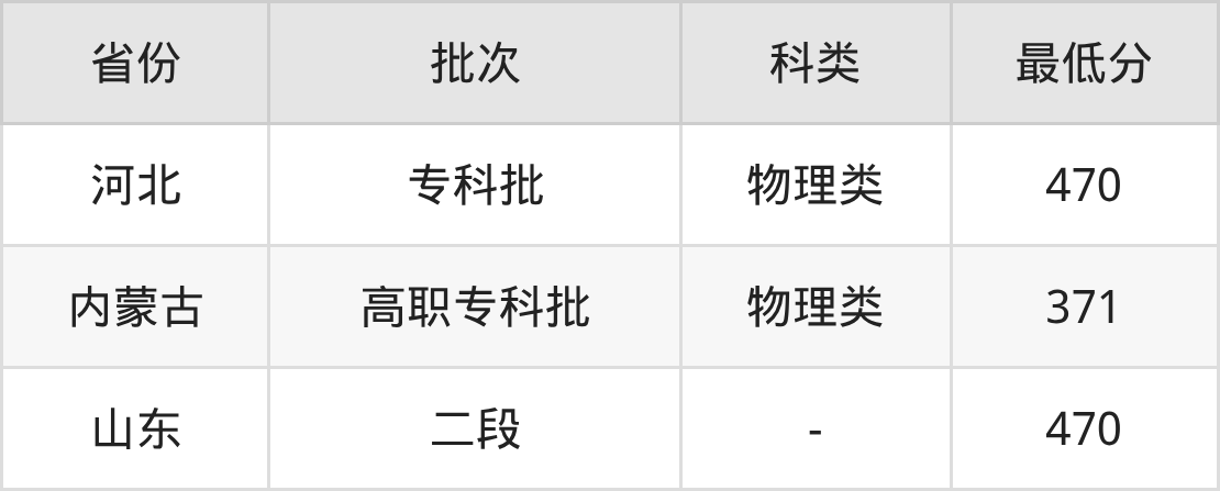 民政职业大学殡葬设备维护技术专业录取分数线2025各省汇总显示,市外招生最低分为山东470分、河北470分、内蒙古371分。更多专业分数详情、选科要求、专业简介等均可在正文查阅。