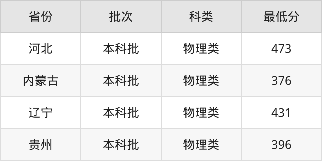 | 批次 | 科类 | 最低分 | 位次 |