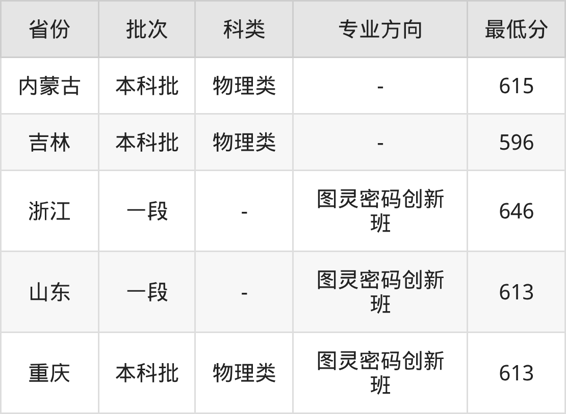 暨南大学密码科学与技术专业录取分数线2025各省汇总显示,省外招生最低分为内蒙古615分、吉林596分、浙江646分、山东613分等。更多专业分数详情、选科要求、专业简介等均可在正文查阅。