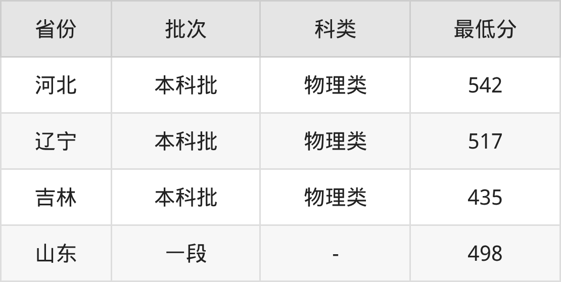 | 批次 | 科类 | 最低分 | 位次 |