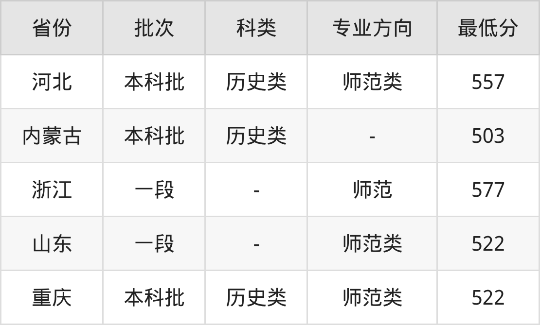 历史类557分(师范类、位次19607名);