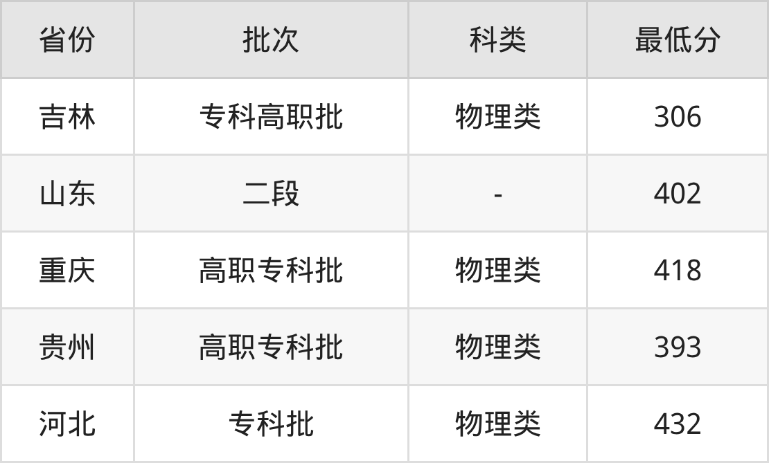 1、吉林省(专科高职批)