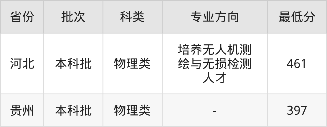 物理类461分(培养无人机测绘与无损检测人才、位次221488名);