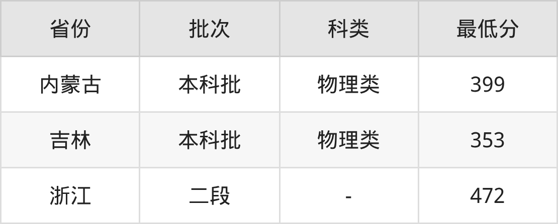 | 批次 | 科类 | 最低分 | 位次 |