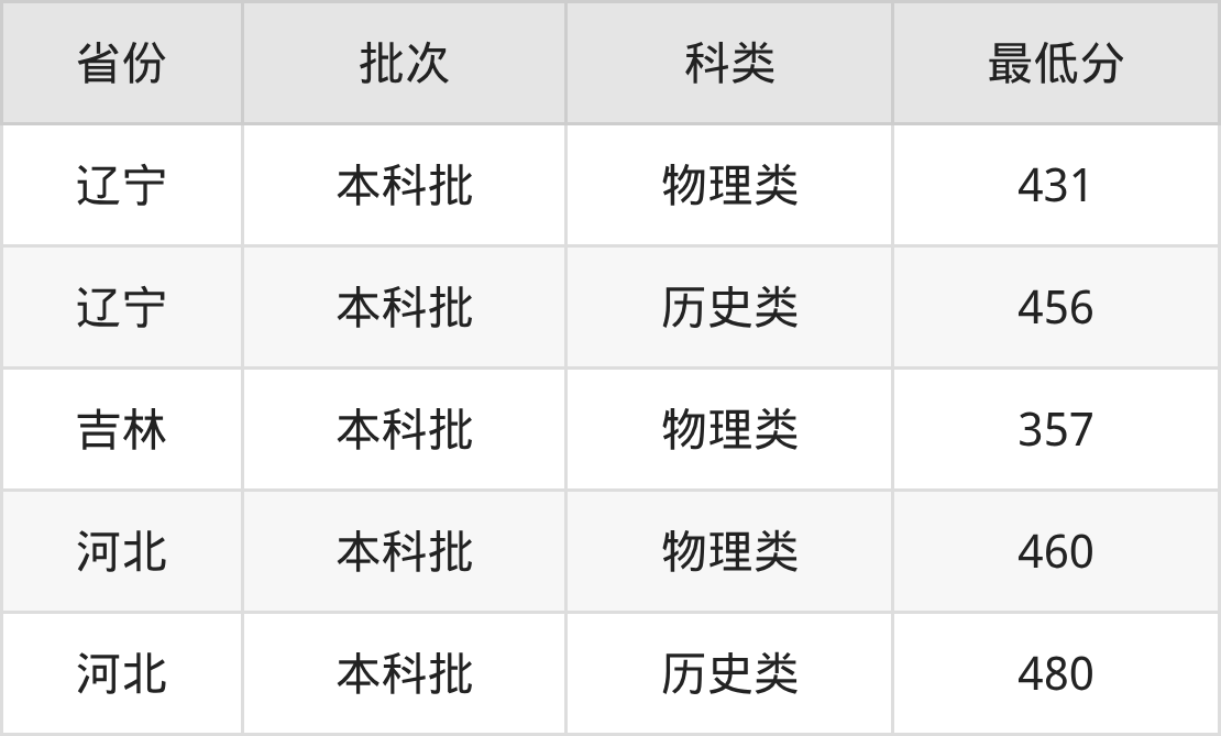 | 批次 | 科类 | 最低分 | 位次 |