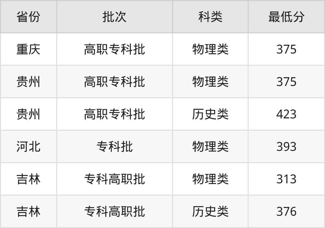 4、吉林省(专科高职批)