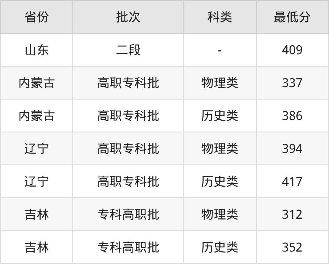 2、吉林省(专科高职批)