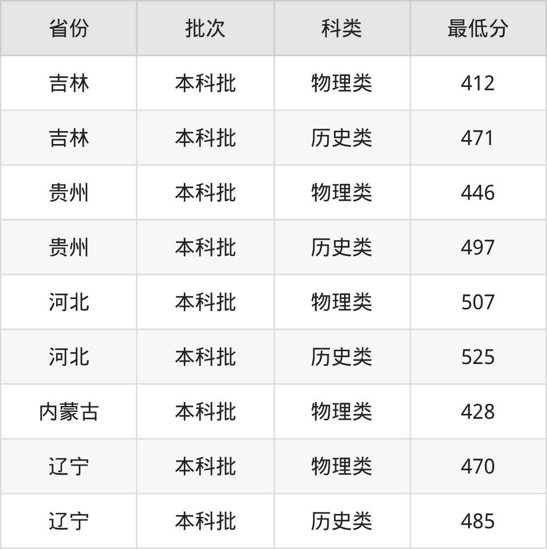 2025年白城师范学院物流管理专业在省外招生分数线各不相同,具体如下: