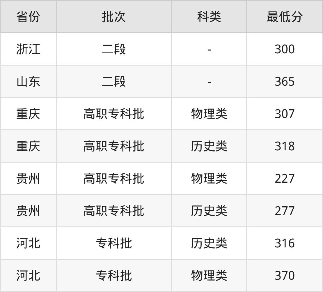 | 批次 | 科类 | 最低分 | 位次 |