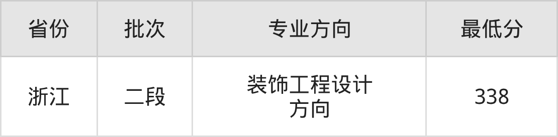 上海思博职业技术学院建筑装饰工程技术专业录取分数线2025各省汇总显示,市外招生最低分为浙江338分。更多专业分数详情、选科要求、专业简介等均可在正文查阅。