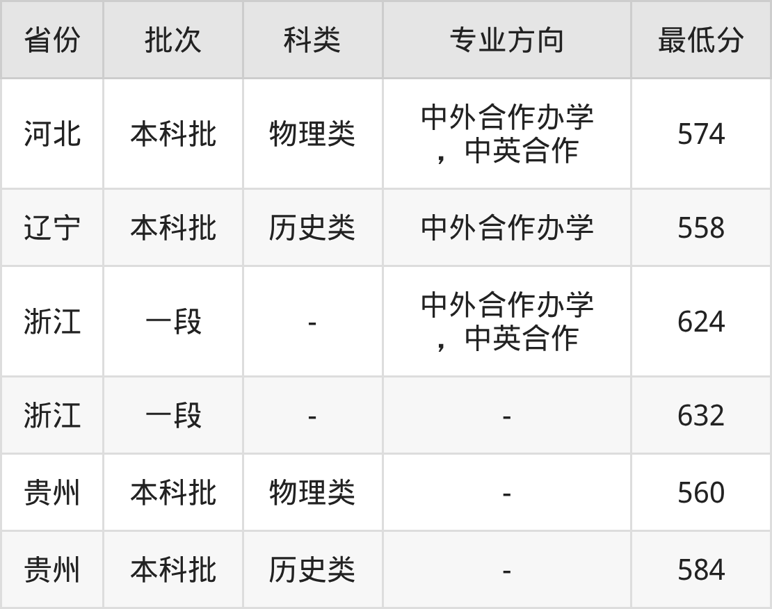 624分(中外合作办学,中英合作、位次28070名),632分(位次22347名);